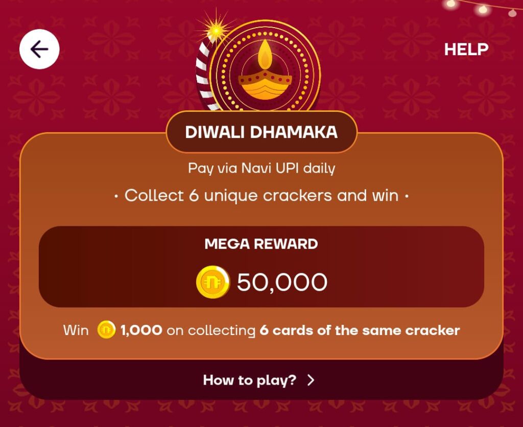 Navi Diwali Dhamaka : Collect Cracker Cards and Win 1000