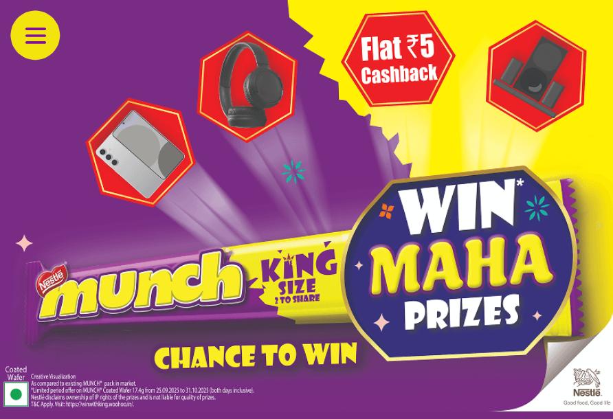 Munch Win Maha Prizes Offer – Win Cashback, Headphone, Soundbar, Samsung Fold