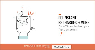 Now get 45% cashback on first transaction of mobile recharge/bill payment Only On Freecharge!